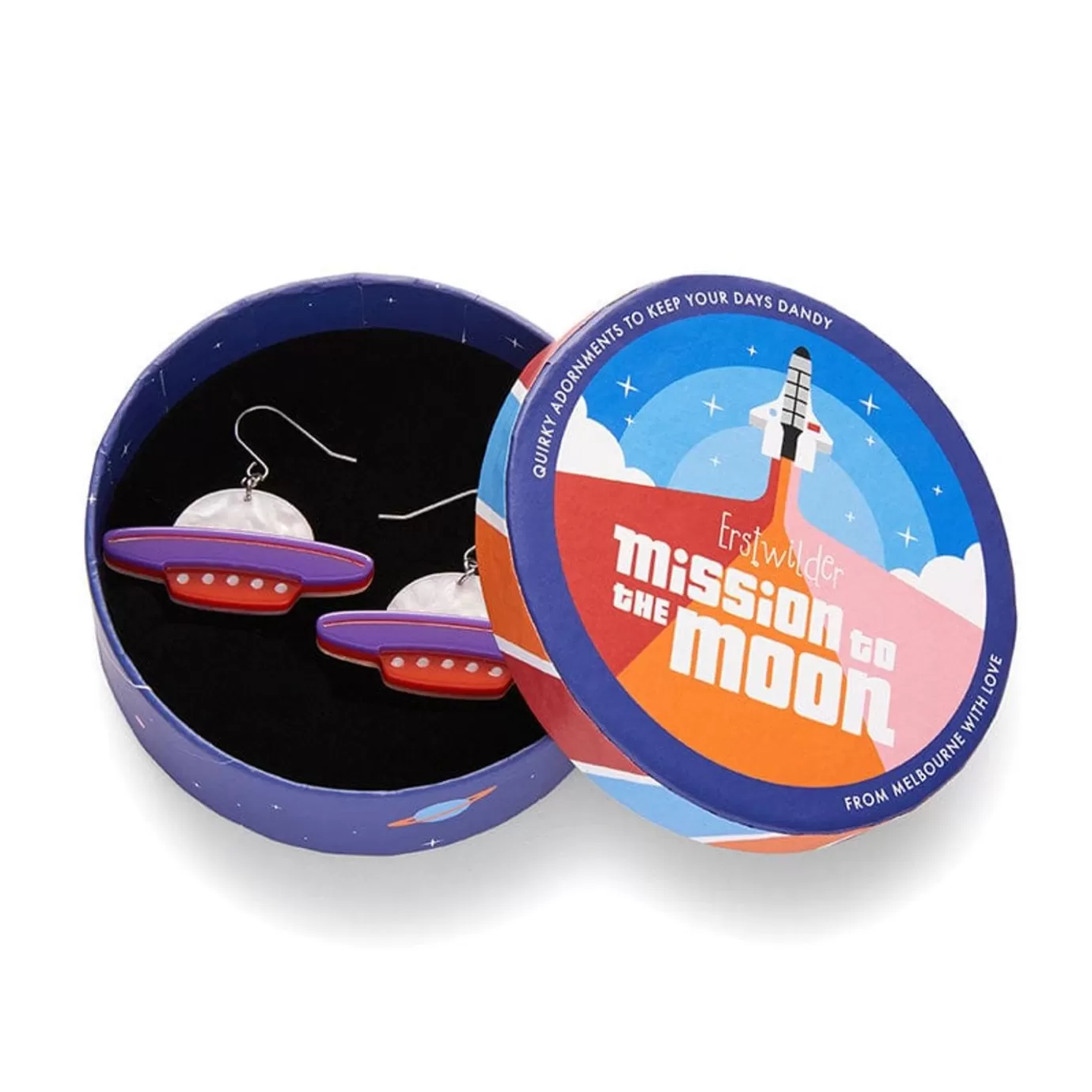 A Exciting Ensemble Of Extraterrestrial Resins Bring These Hand-Assembled Ufo Earrings To Life. Part Of Our Mission To The Moon Range Of Out Of This World Accessories, Beam Me Up Takes Design Inspiration From 1960S Futurism, With Some Added Erstwilder Quirk, And Can Be Worn Alongside Their Matching Brooch When Making First Contact With New Friends.