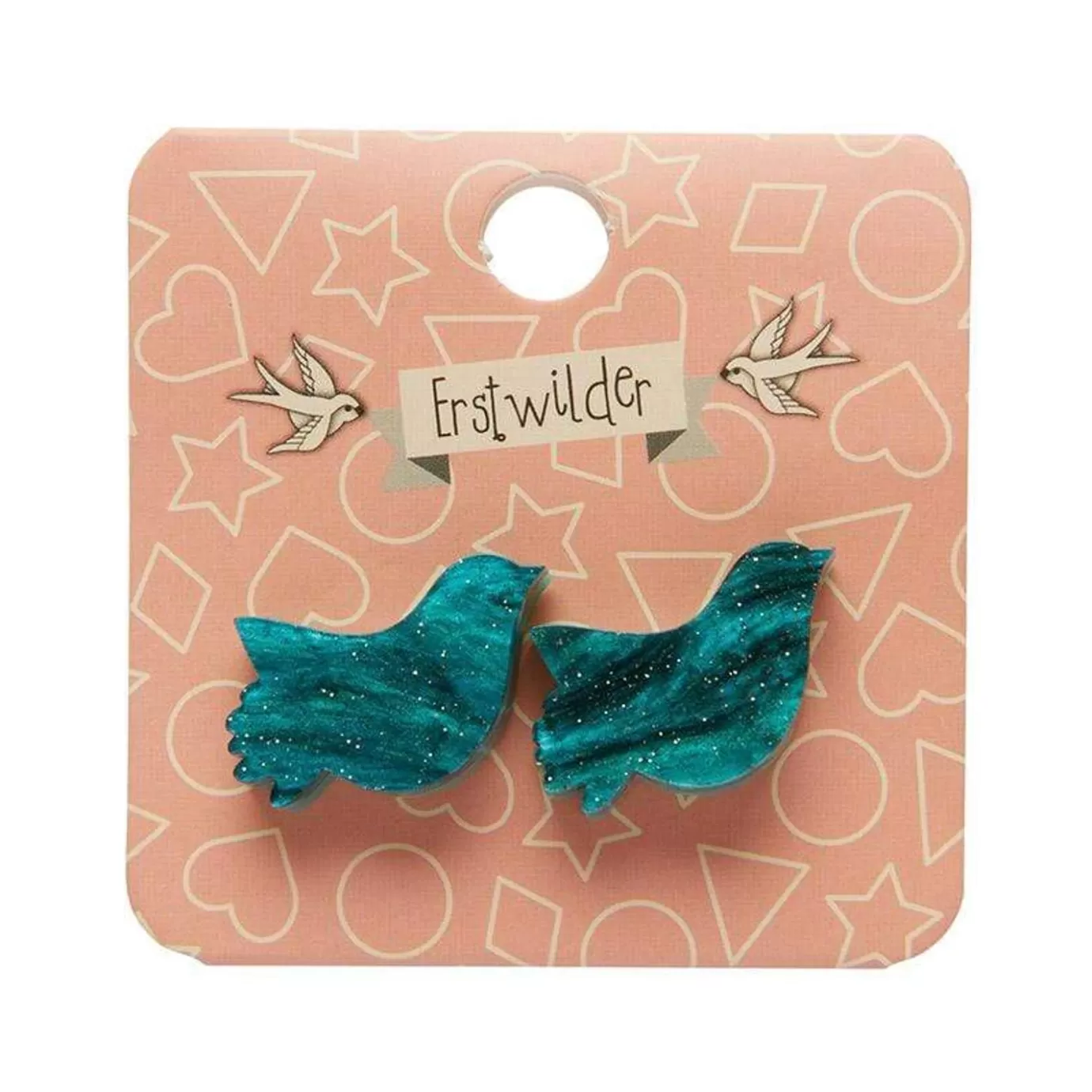 Let Your Spirit Soar With These Bird-Shaped Erstwilder Essential Stud Earrings, Made With Green Ripple Glitter Resin. They Make For That Perfect Pop Of Colour To Compliment Your Outfit, Or To Match With Your Favourite Resin Or Acrylic Brooch Or Necklace.