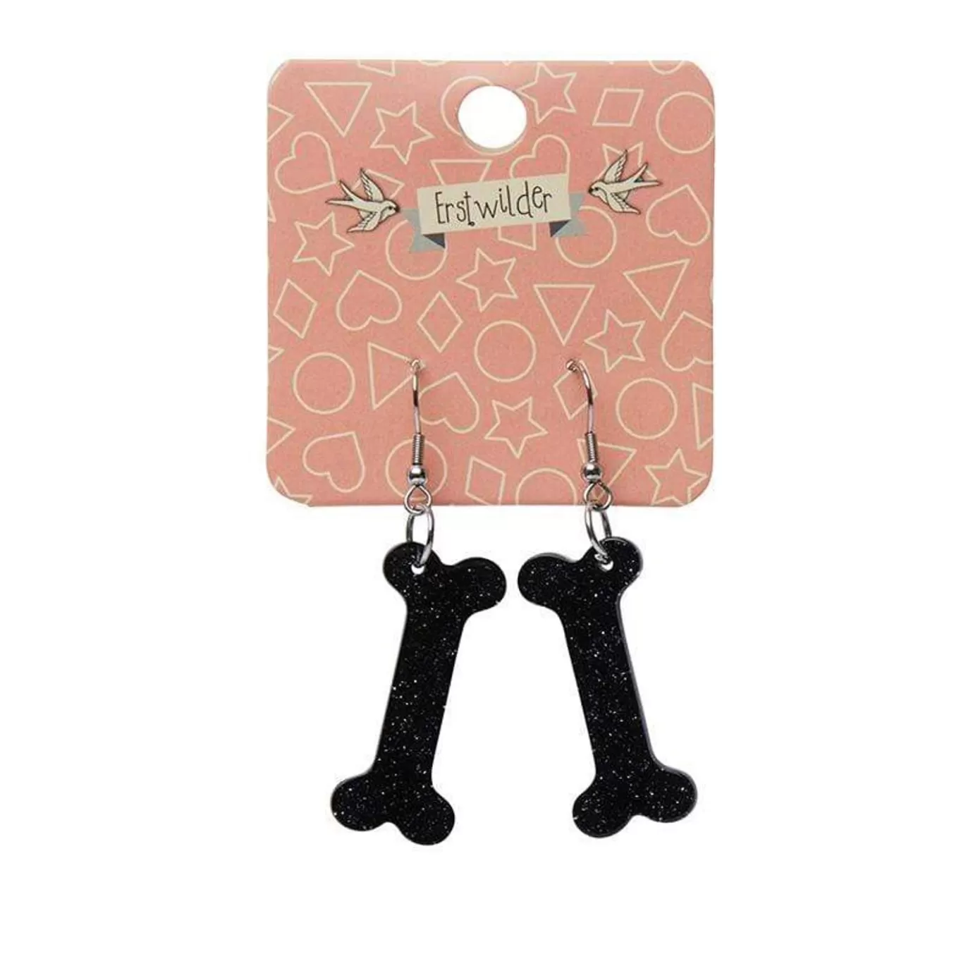 Perfect For Your Next Big Shin-Dig, These Bone-Shaped Erstwilder Essentials Drop Earrings, Crafted From Glitter Black Re…