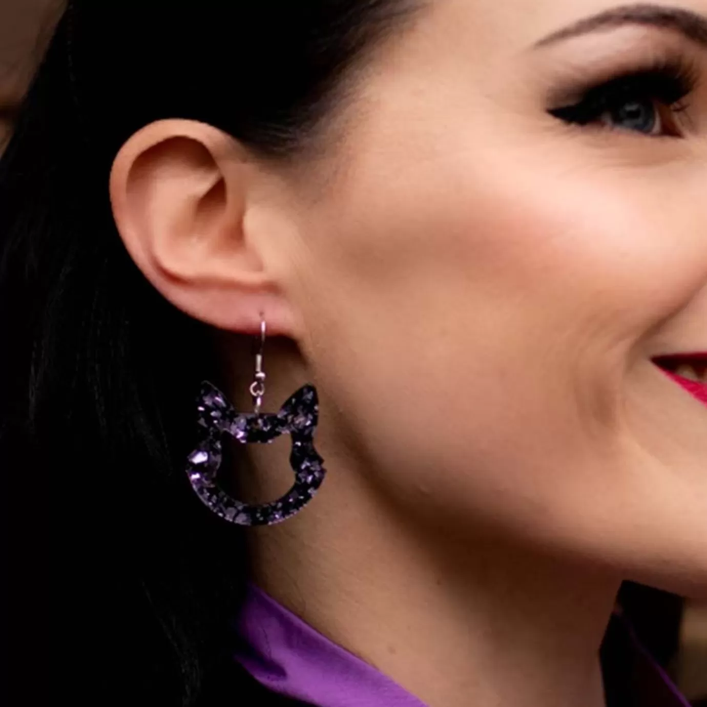 Be the first to review “Erstwilder Cat Head Chunky Glitter Resin Drop Earrings – Purple* Essential Earrings” Cancel reply