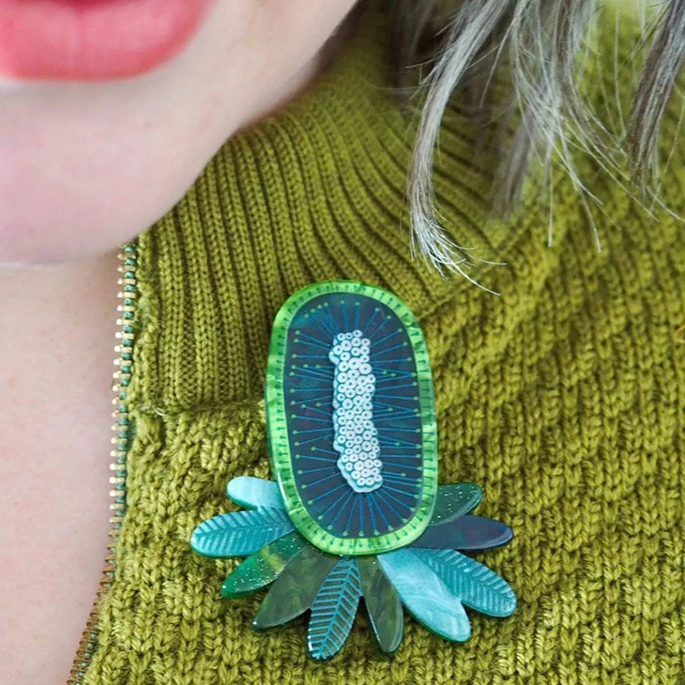 Hand-Assembled From A Selection Of Statement Resins And Featuring A Combination Of Printed And Painted Details, This Blue Banksia Brooch Is Part Of The Third Erstwilder X Jocelyn Proust Designs Collaboration. Designed To Help Remedy The Blues, For Wearer And Admirer Alike.