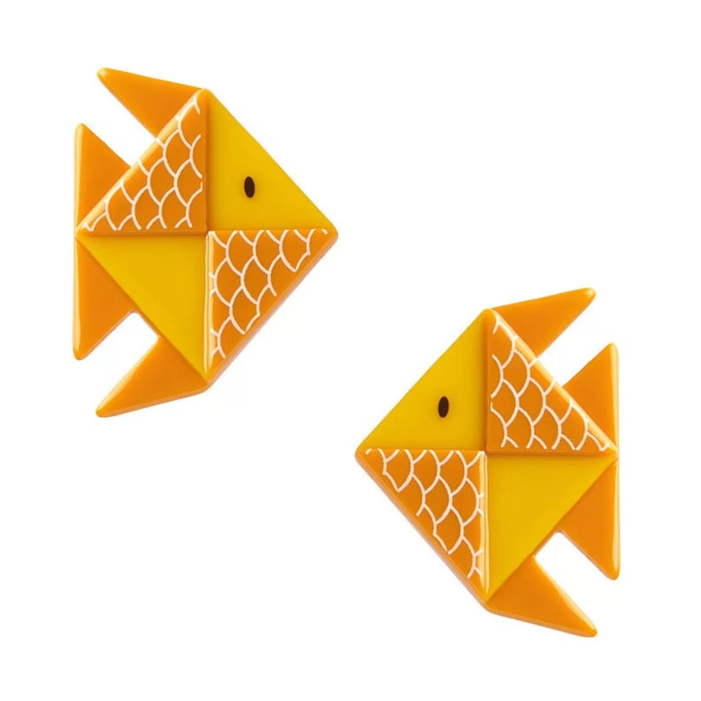 Hand-Assembled From A Combination Of Printed And Solid Resins, These Limited-Run The Memorable Goldfish Hair Clips Are Accessories Not So Easily Forgotten. With The Expertly-Layered Resin Perfectly Emulating The Folds Of Origami Paper, You Can Put Memory-Related Myths To Bed By Pairing These Hair Clips With The Forget-Me-Not Elephant Brooch, Or Their Matching Brooch And Earrings.