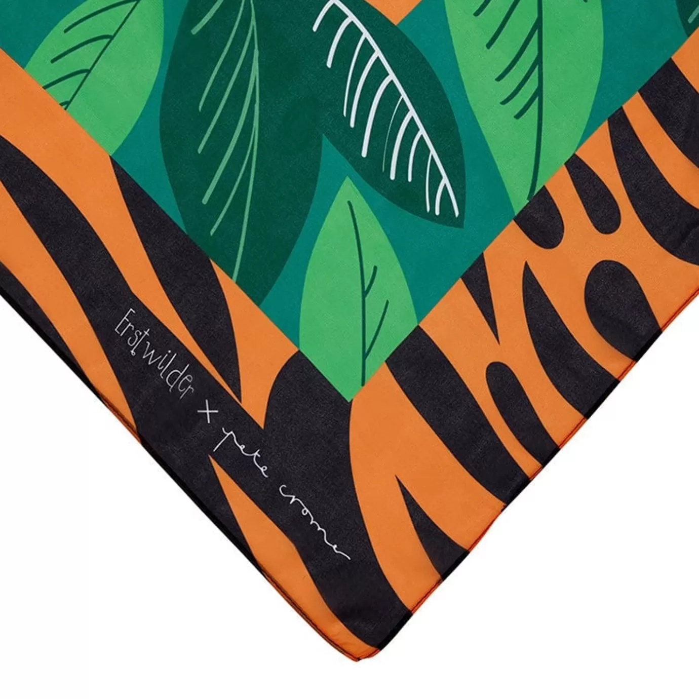 Transport Your Wardrobe Into The Wild, With This Erstwilder X Pete Cromer Tranquil Tiger Square Scarf. Light Weight, With A Velvety Soft Feel, Wear With The Other Tranquil Tiger Designs Within The Range Or By Itself For Effortless Style.