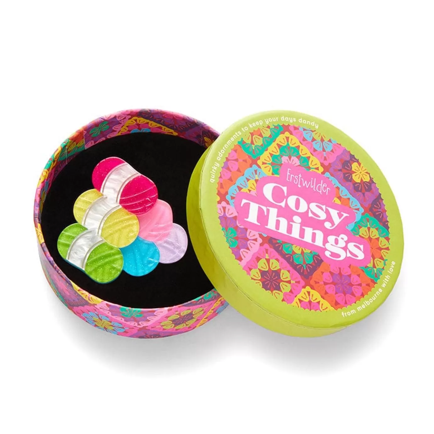 Nanna’S Knitting Hobby Has Been Turned Into Wearable Resin Art With This Balls Of Yarn Brooch From Our Cosy Things Collection. Hand-Assembled From Colourful Resin, With Laser-Etched Details And Classic Erstwilder Charm, Yarn Spinner Is The Perfect Piece For Crochet And Knitting Enthusiasts And Even Has A Matching Enamel Pin.