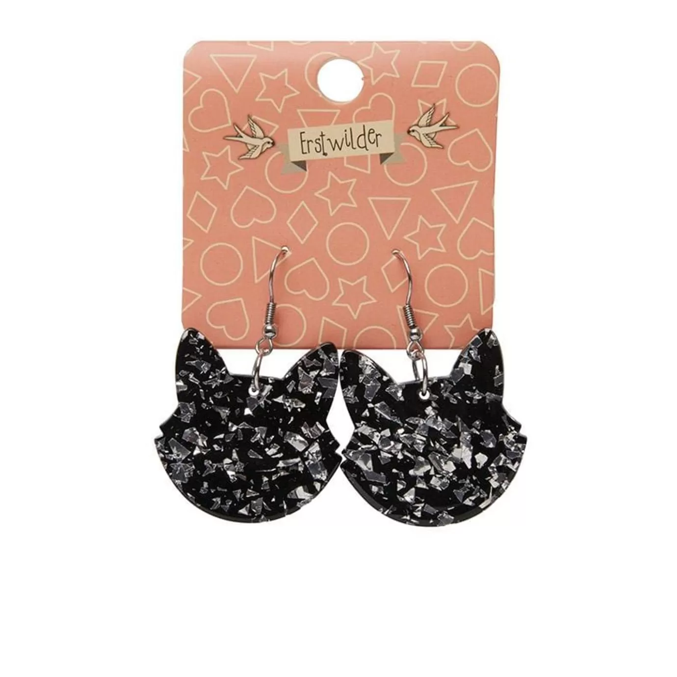 Erstwilder Solid Cat Head Chunky Glitter Resin Drop Earrings – Silver* Essential Earrings