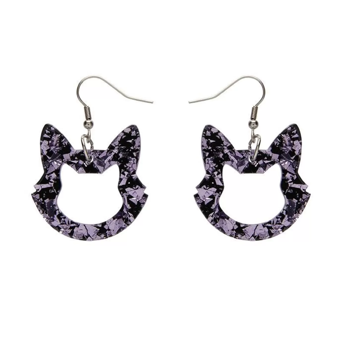 Erstwilder Cat Head Chunky Glitter Resin Drop Earrings – Purple* Essential Earrings