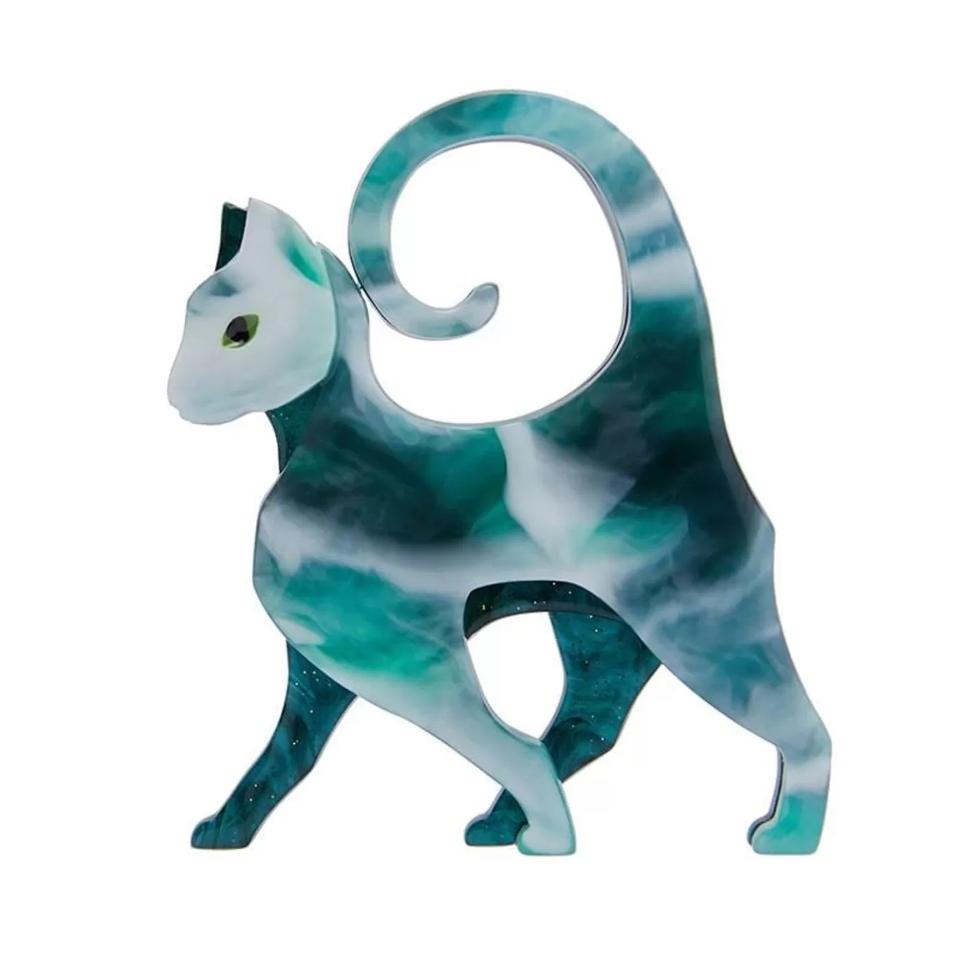 Please Note Each Piece May Differ From One To Another, And To The ‘On The Prowl Cat’ Brooch Pictured. The ‘On The Prowl Cat’ Brooch Features A Unique Green Marbled Resin, The Colours Can Vary From A Rich Jade Hue, To Lighter Green Colours, With More Pronounced White Ribbons. Just Like Real Marble Each Pattern Is Different And Makes Each Brooch Totally Individual And Unique.
